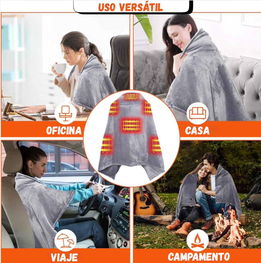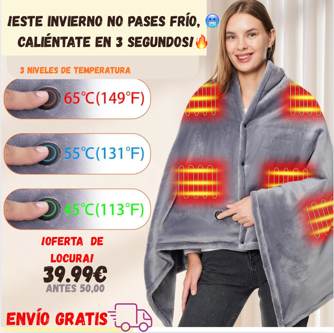 Nuestra manta térmica de franela se calienta en solo 3 segundos y te da hasta 7 horas de calor sin enchufes. Súper suave, portátil y perfecta para casa, trabajo o exteriores.