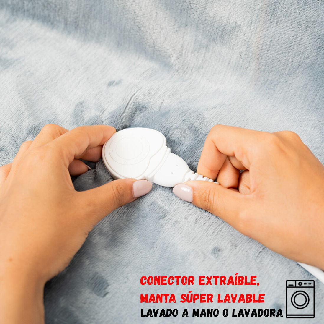 Equipada con tecnología PTC, la manta se calienta en pocos segundos y distribuye el calor de forma uniforme.