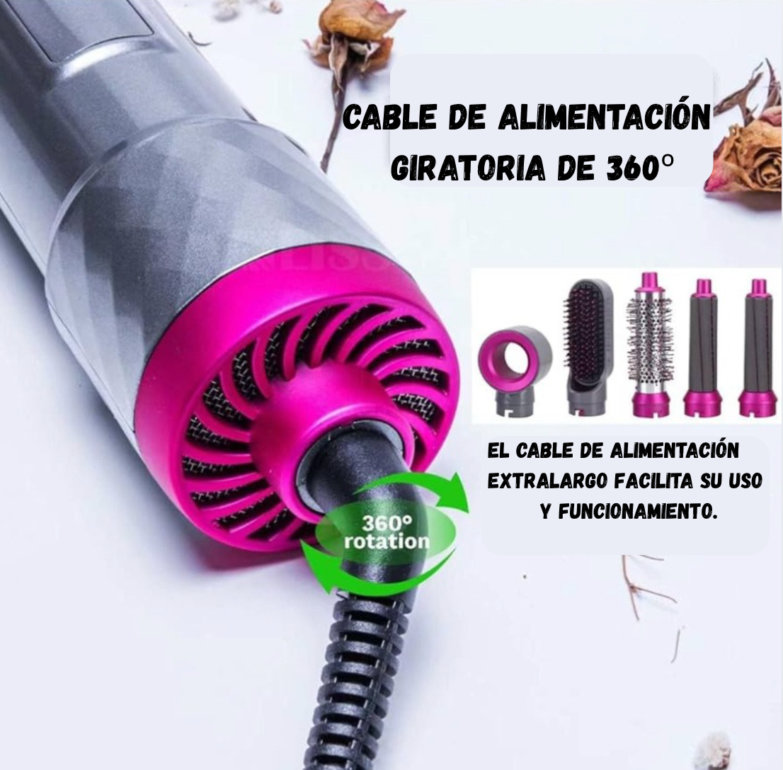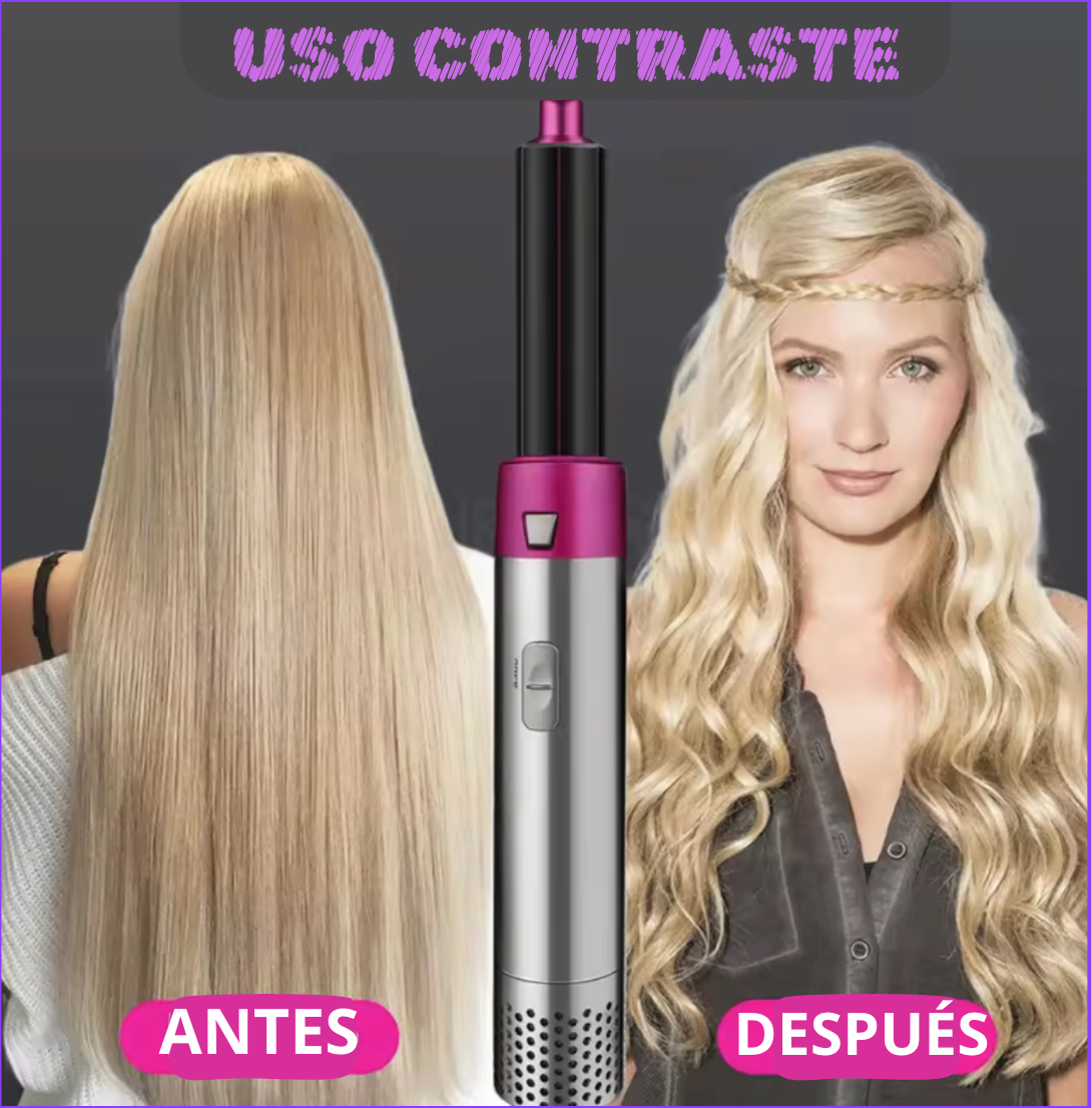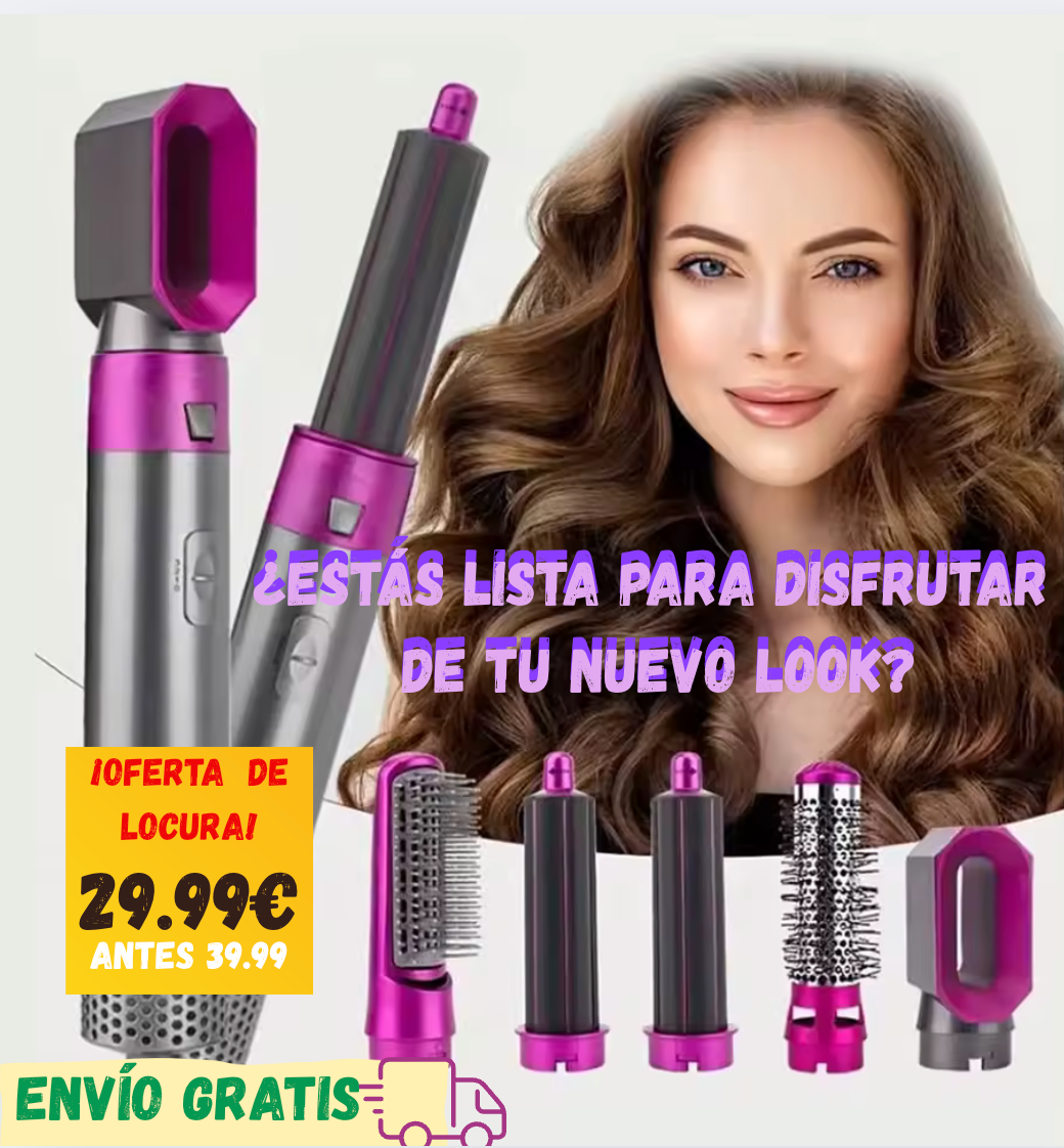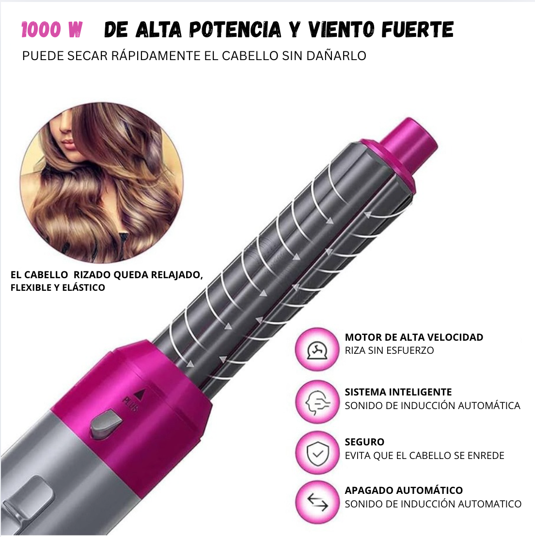 Incluye cabezales para alisar, rizar, ondular, dar volumen y peinar, adaptándose a cualquier tipo y textura de cabello.